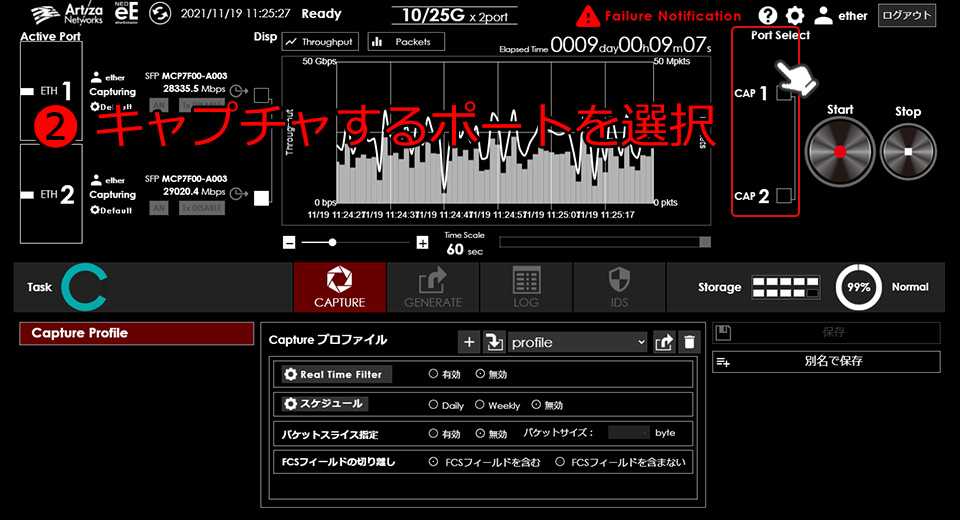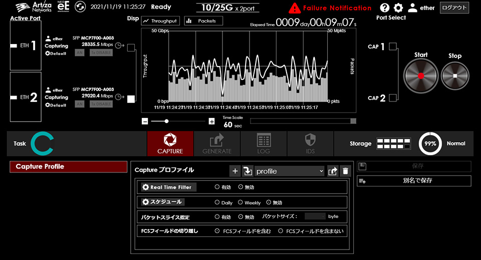 | キャプチャ性能 | 4Gbps | 20Gbps | 50Gbps | 100Gbps |